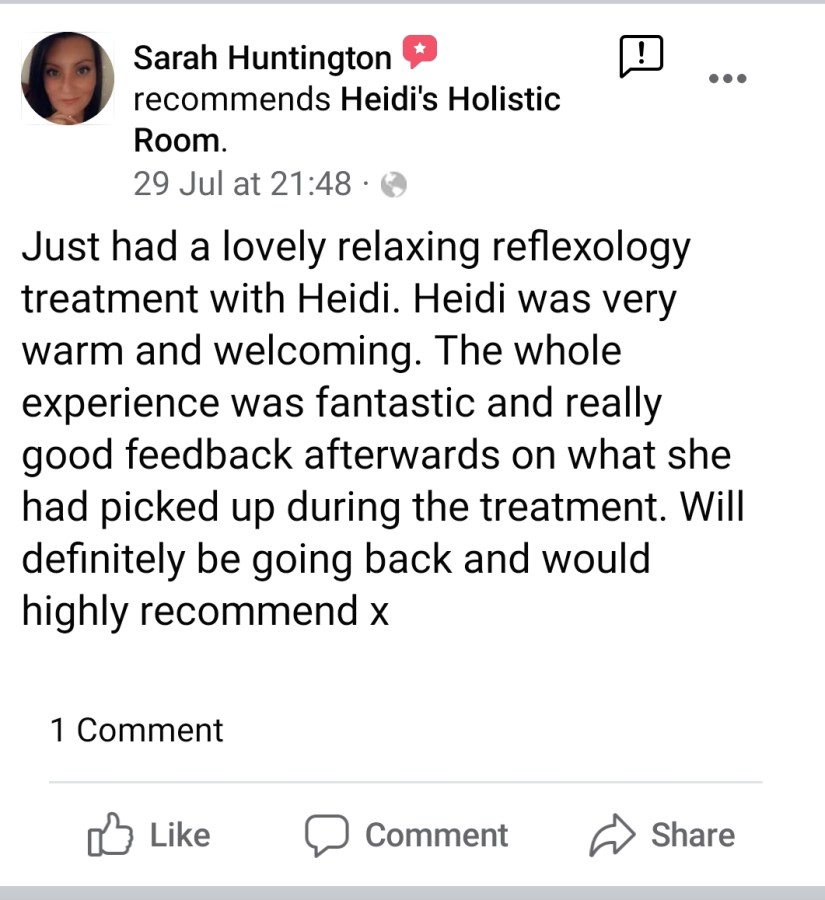 I am a mum who already works and wanted to incorporate something I found interesting into my life and so was born Heidi’s Holistic Room! I began learning about Reflexology in 2017, completed my 100 case studies through the summer and qualified by the Winter. I found it fascinating how accurate the findings could be… Continue reading About